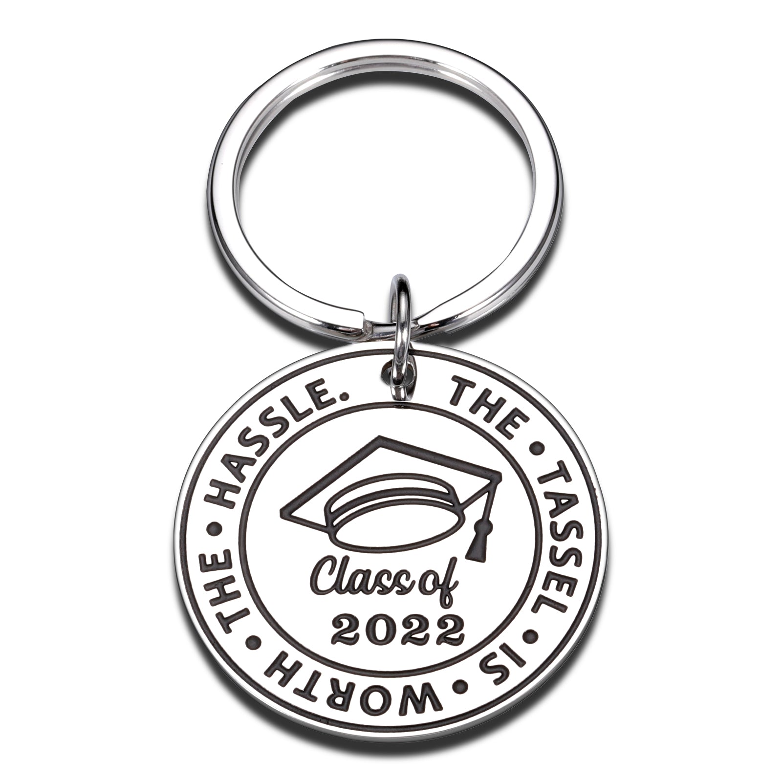 - Graduation Gifts for College Students - As most colleges are still not hosting normal graduation ceremonies, celebrating the class of 2022 might mean selecting the perfect present. Engraved with inspirational messages “the tassel is worth the hassle”, this keychain will be the best college graduation gifts to celebrate your 2022 grad's major milestone. Lettering will be engraved and clearly presented on the surface of this keychain.