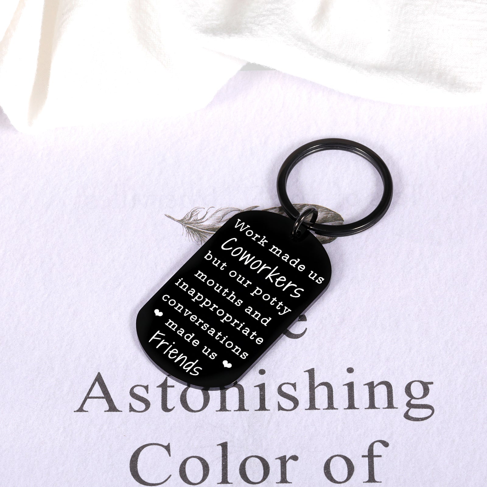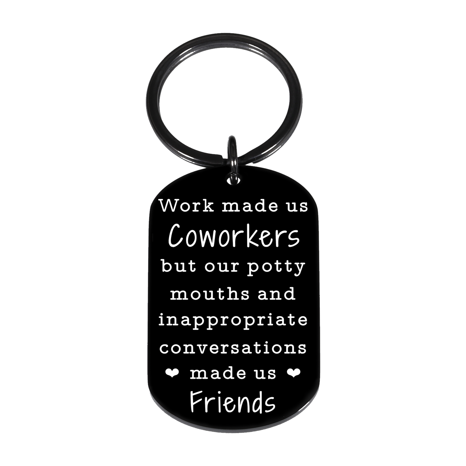 A funny gift idea to surprise your coworker to friend, best coworker, work bestie, work friend, retired teacher, office friend, colleague, employee, nurse coworker. This cute coworker keychain is an awesome gift for your coworker friends for their birthday, Christmas stocking stuffer, office farewell party, bosses day, coworker leaving for new job, employee appreciation day present, colleagues to friends moving away gift, promotion, retirement gifts.