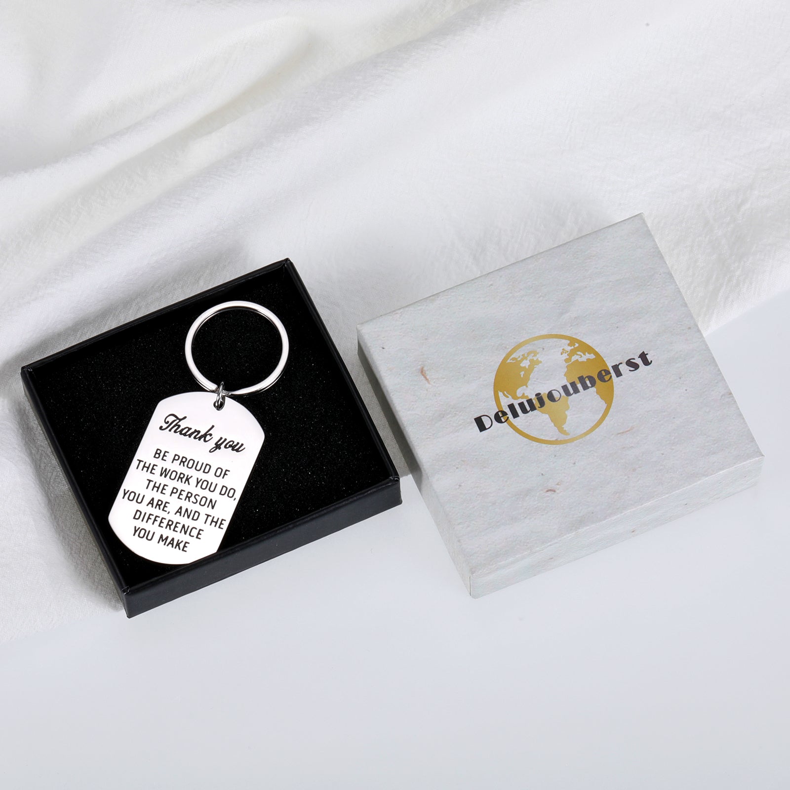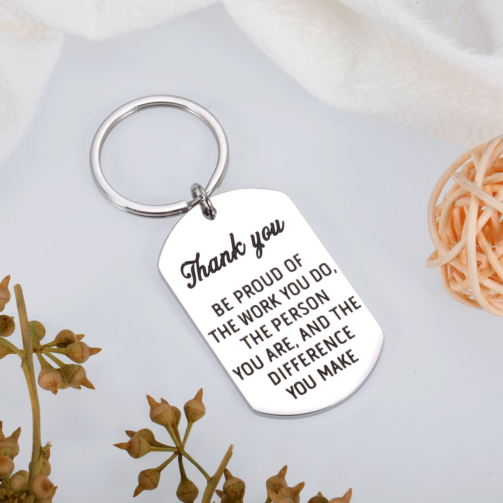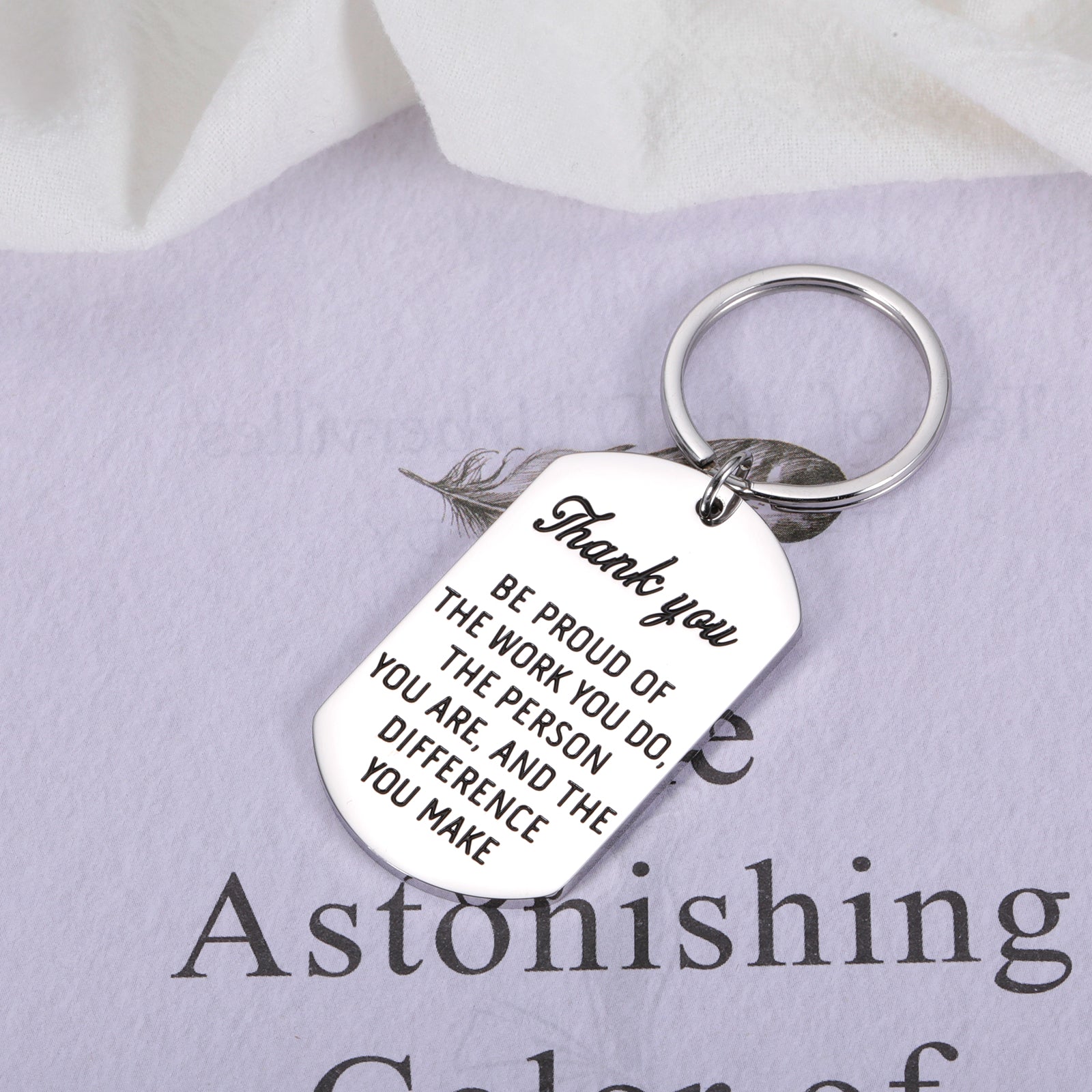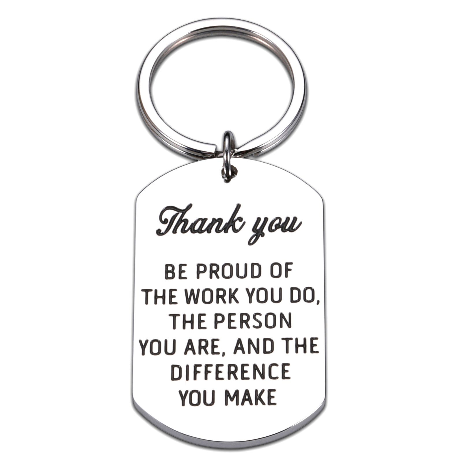 - 🎁Social Worker Gifts - Perfect Gifts for police, teacher, nurse, childcare provider, social worker, firefighter, family member, caregiver, vet, staff, hostesses, supervisor, leader, partners, etc. This inspiring keychain engraved with "Thank you be proud of the work you do, the person you are, and the difference you make" is a wonderful present that can be gifted to employees, coworkers, team members as an office party, working anniversary, company anniversary, team-building gifts.