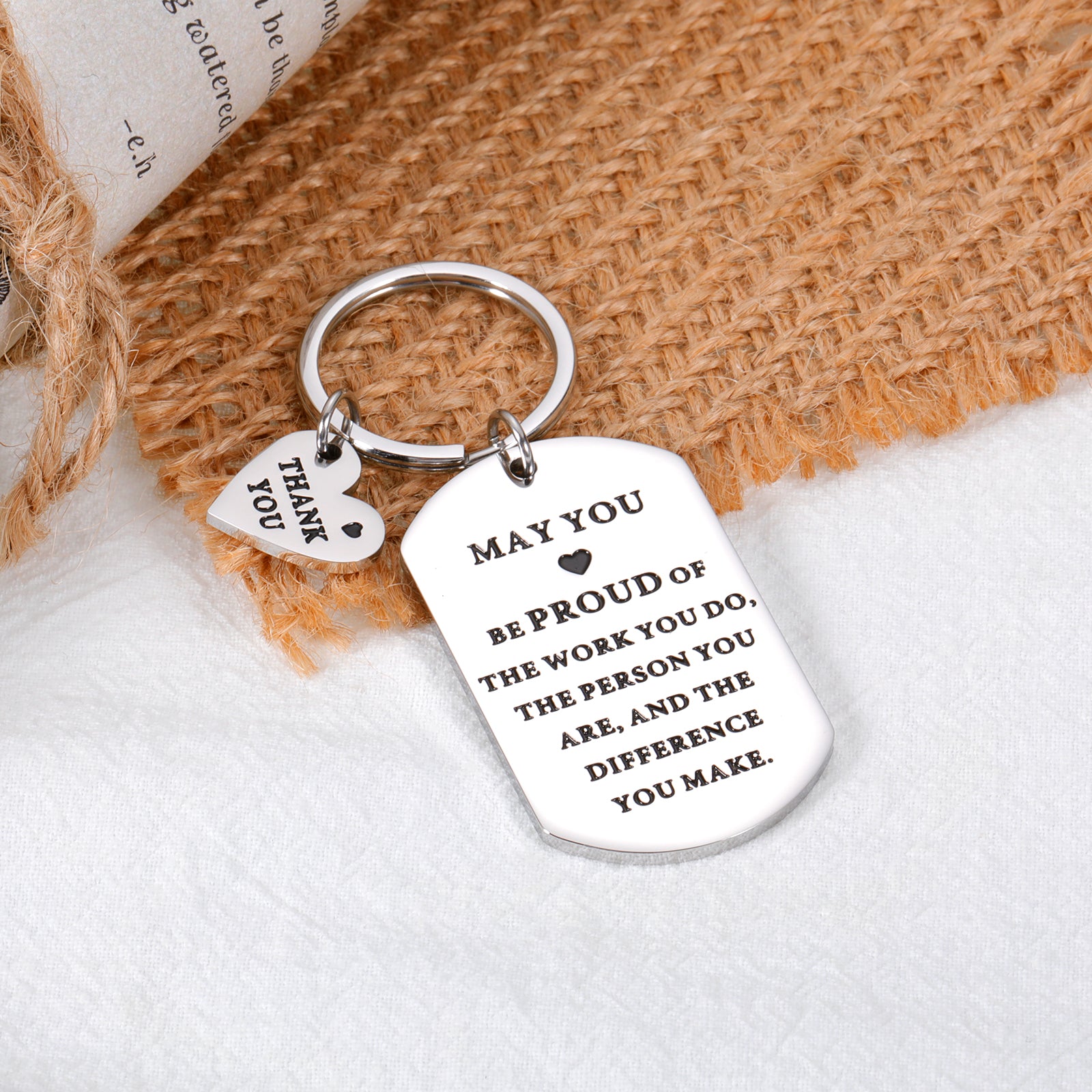 - 🥰Perfect Gifts for Coworkers - Whether your coworker is leaving the company or you simply want to share an appreciation for their hard work, this well-designed keyring is the best gift for coworkers! Reading “May you be proud of the work you do, the person you are, and the difference you make”, is truly a wonderful way to show your appreciation. Perfect goodbye gifts, retirement gift for coworker, co-worker leaving gift, going away gifts for coworker moving away, coworker going away.