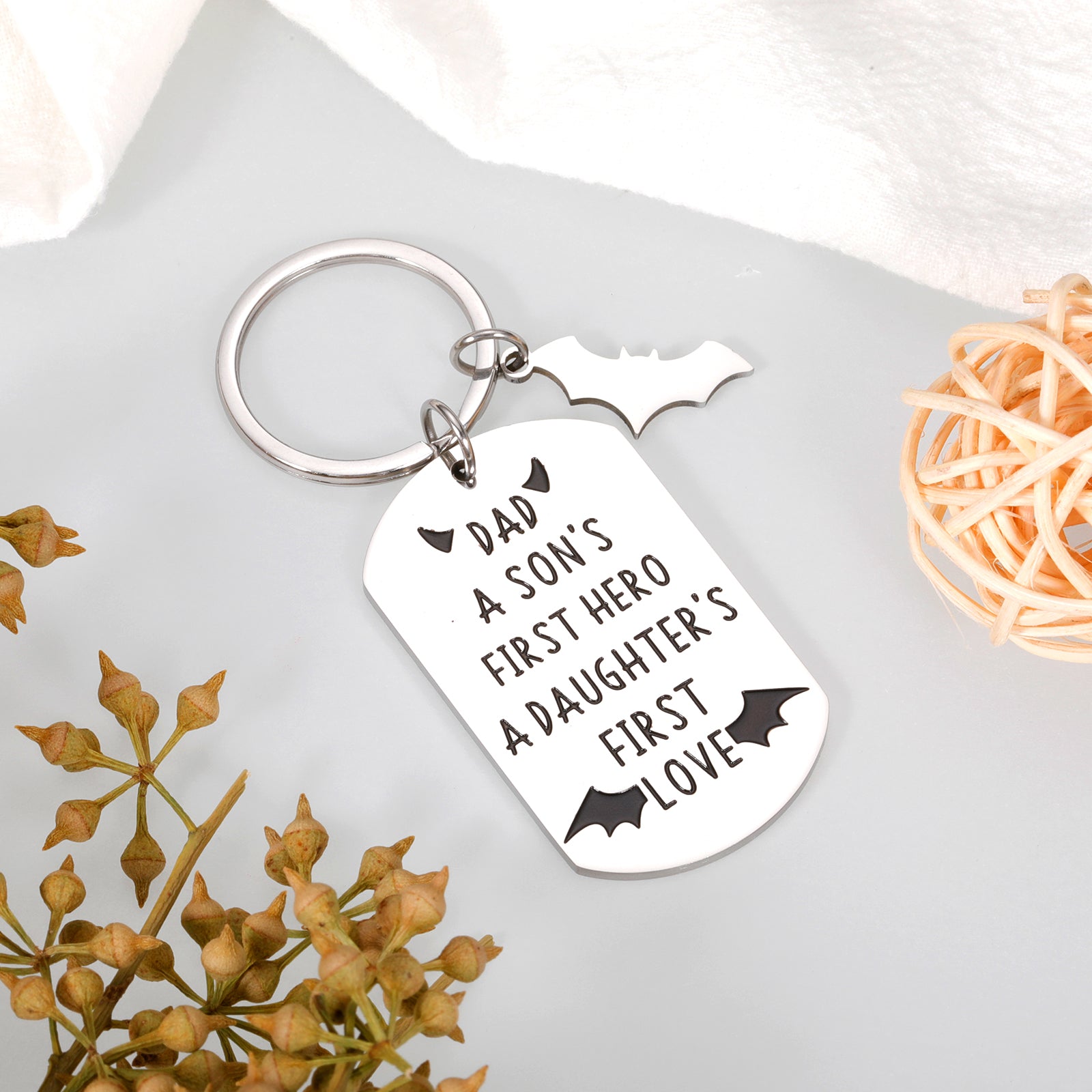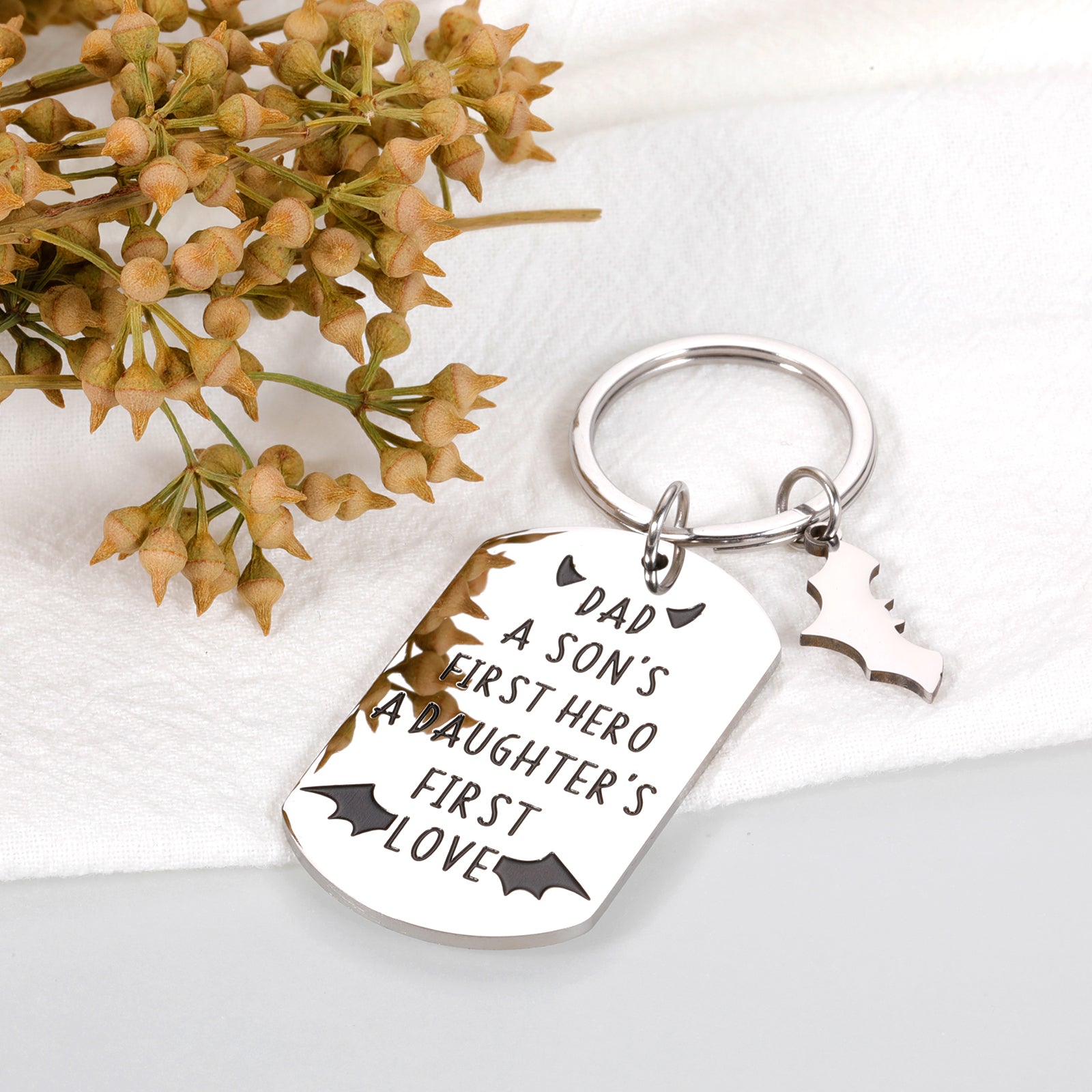- 💌Dad Gifts Keychain - This DAD SONS FIRST HERO DAUGHTERS FIRST LOVE Engraved Keychain is a great gift for your dad, daddy, papa, pop, poppa, father, father in law, stepdad, stepfather, foster father, adoptive father or husband for his birthday, Christmas, Fathers Day, new year, Valentine's Day, wedding ceremony, baby shower, engagement, parting, retirement or family occasions. Perfect Christmas gifts for dad from daughter, son, kids, fathers birthday gifts, dads birthday gifts ideas.