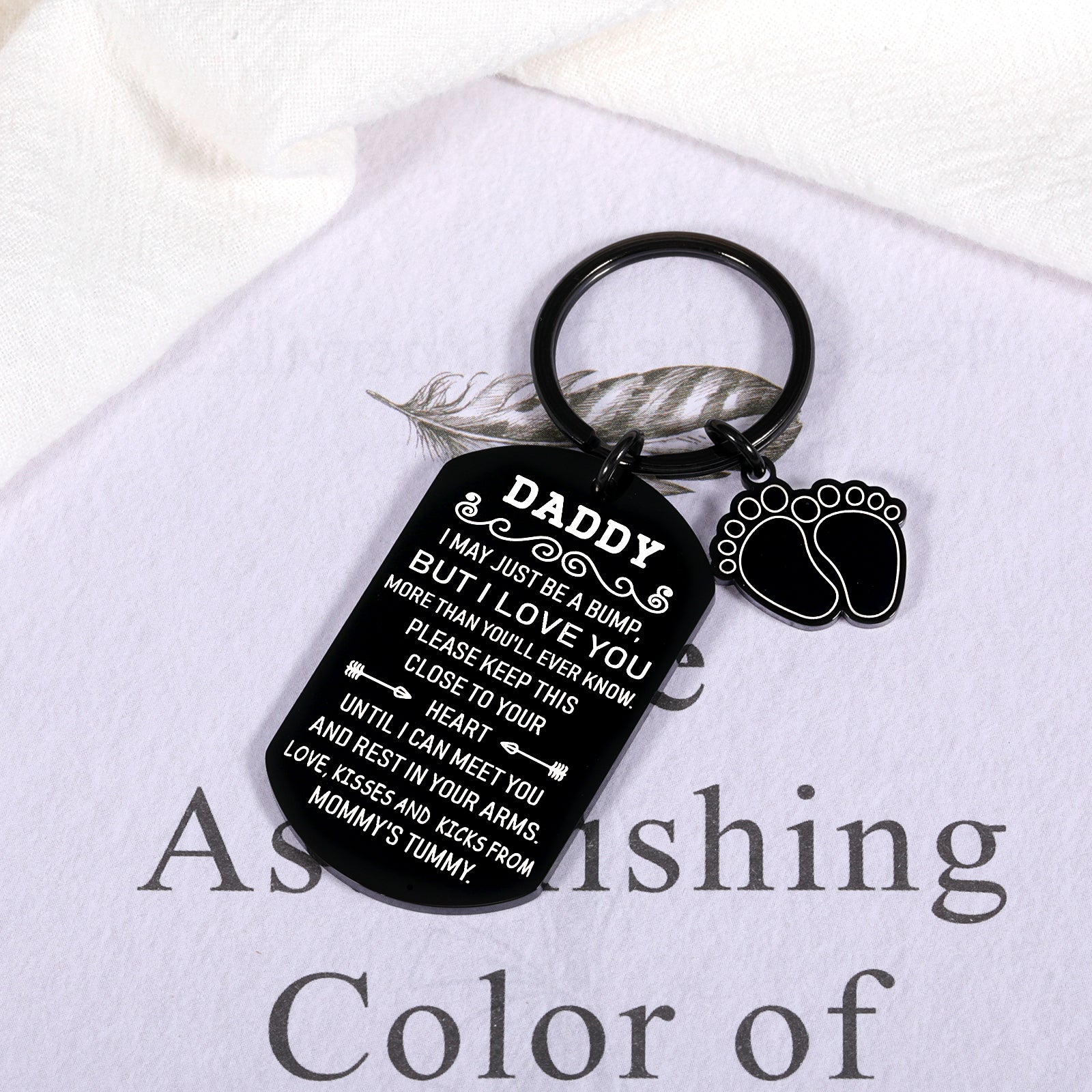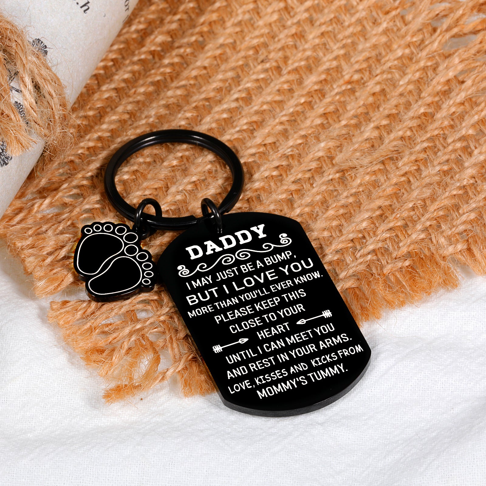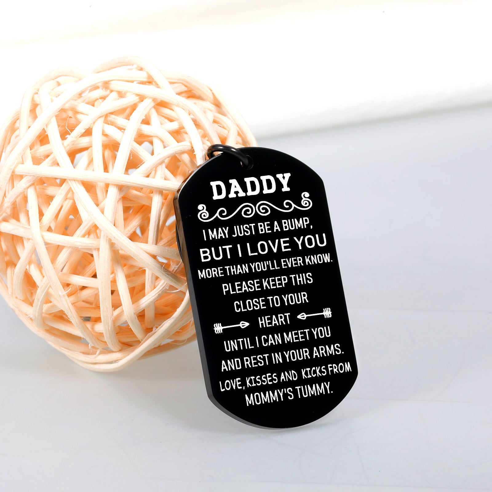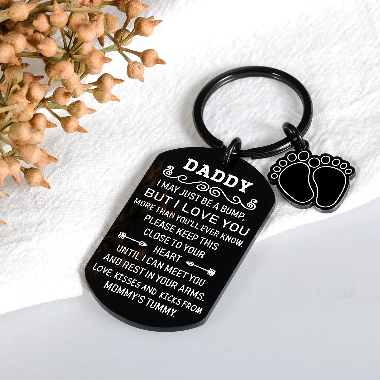 - 【New Dad Gifts for Men】: Engraved on the keychain: " Daddy, I May Just Be a Bump, But I Love You More Than You’ll Ever Know. Please Keep This Close To Your Heart Until I Can Meet You And Rest In Your Arms. Love, Kisses & Kicks From Mommy's Tummy." If you and your husband are parents-to-be, then you can give this lovely keychain to celebrate him as a new dad, a great keepsake between dad and his dear little baby to be born. This unborn baby gift for dad is a perfect little surprise for dad to be.