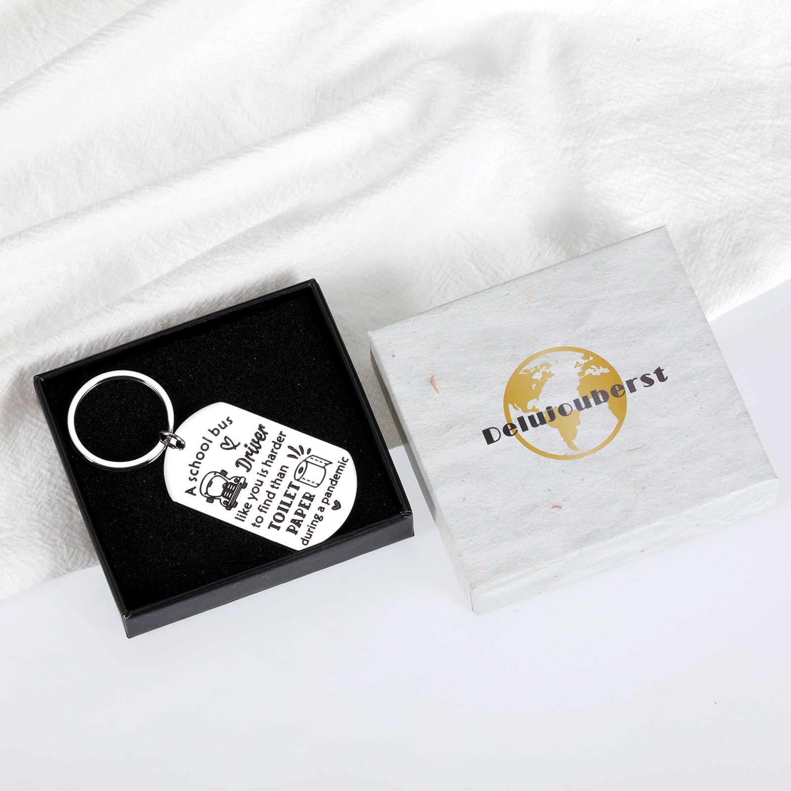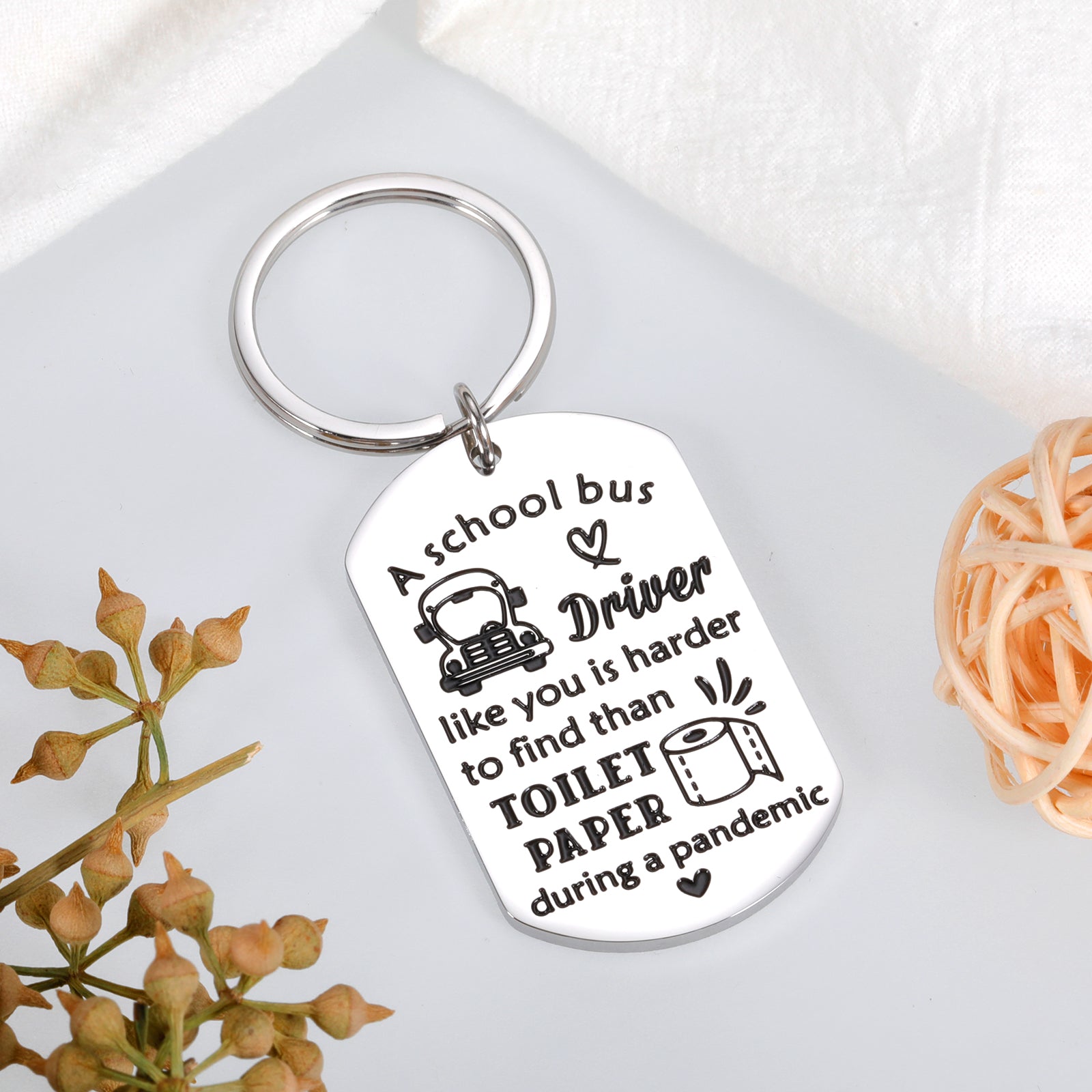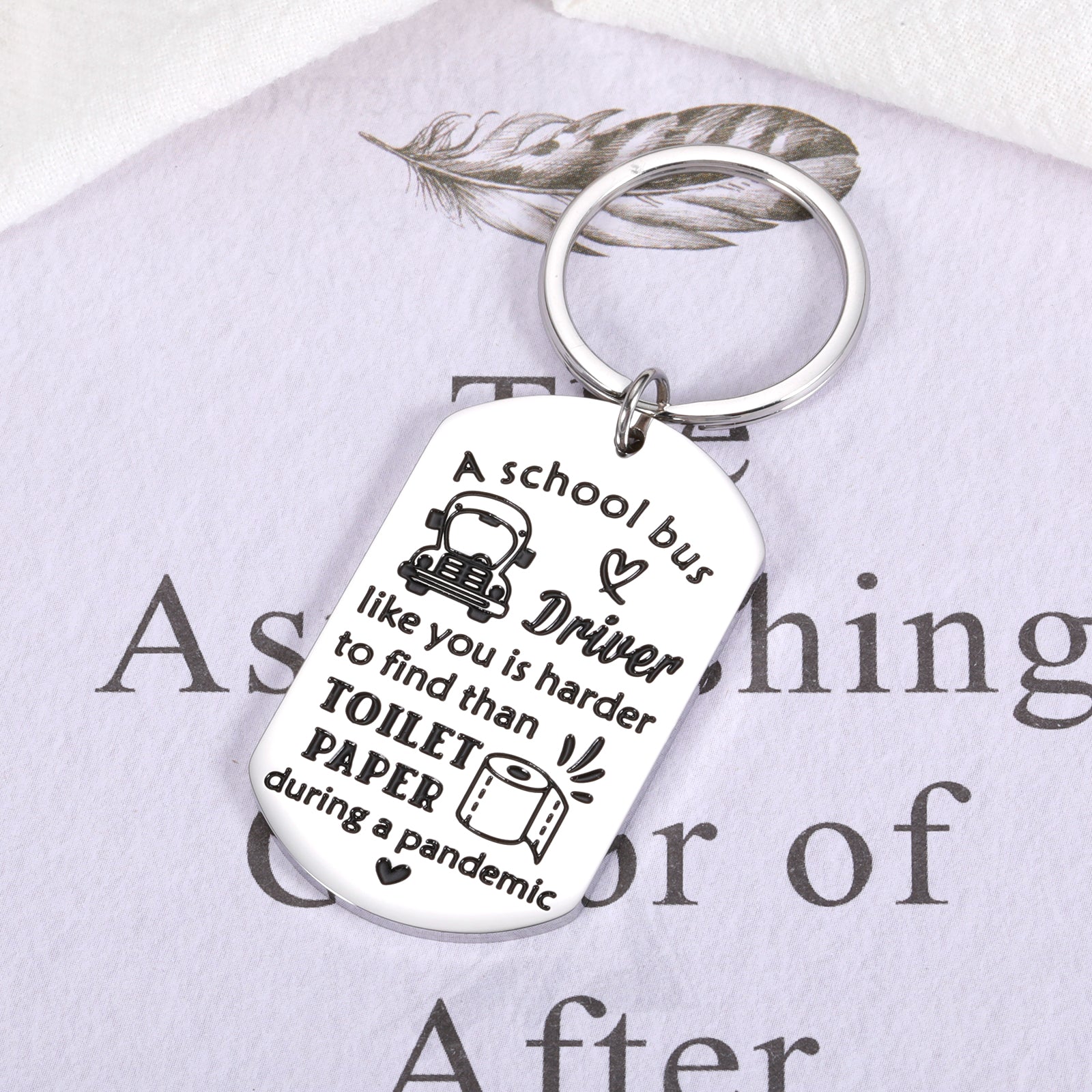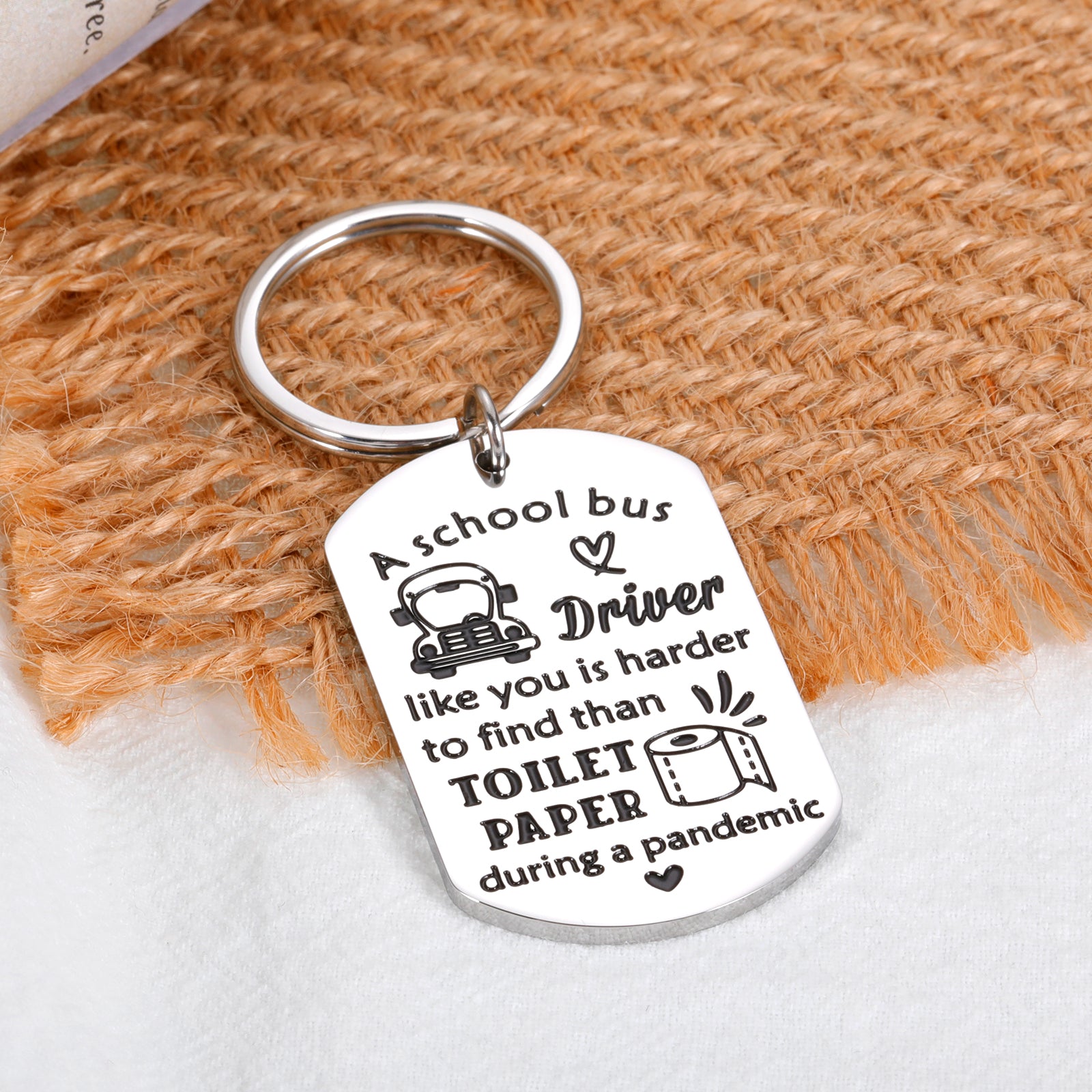 - School Bus Driver Gifts - It is important to salute and appreciate school bus drivers and recognize the invaluable contributions they make to education and safety each and every day. Whether it is National School Bus Driver Appreciation Day, back to school, end of the year, or just because, all school bus drivers deserve to be recognized! These keychains are engraved with funny words "A school bus driver like you is harder to find than toilet paper during a pandemic" .