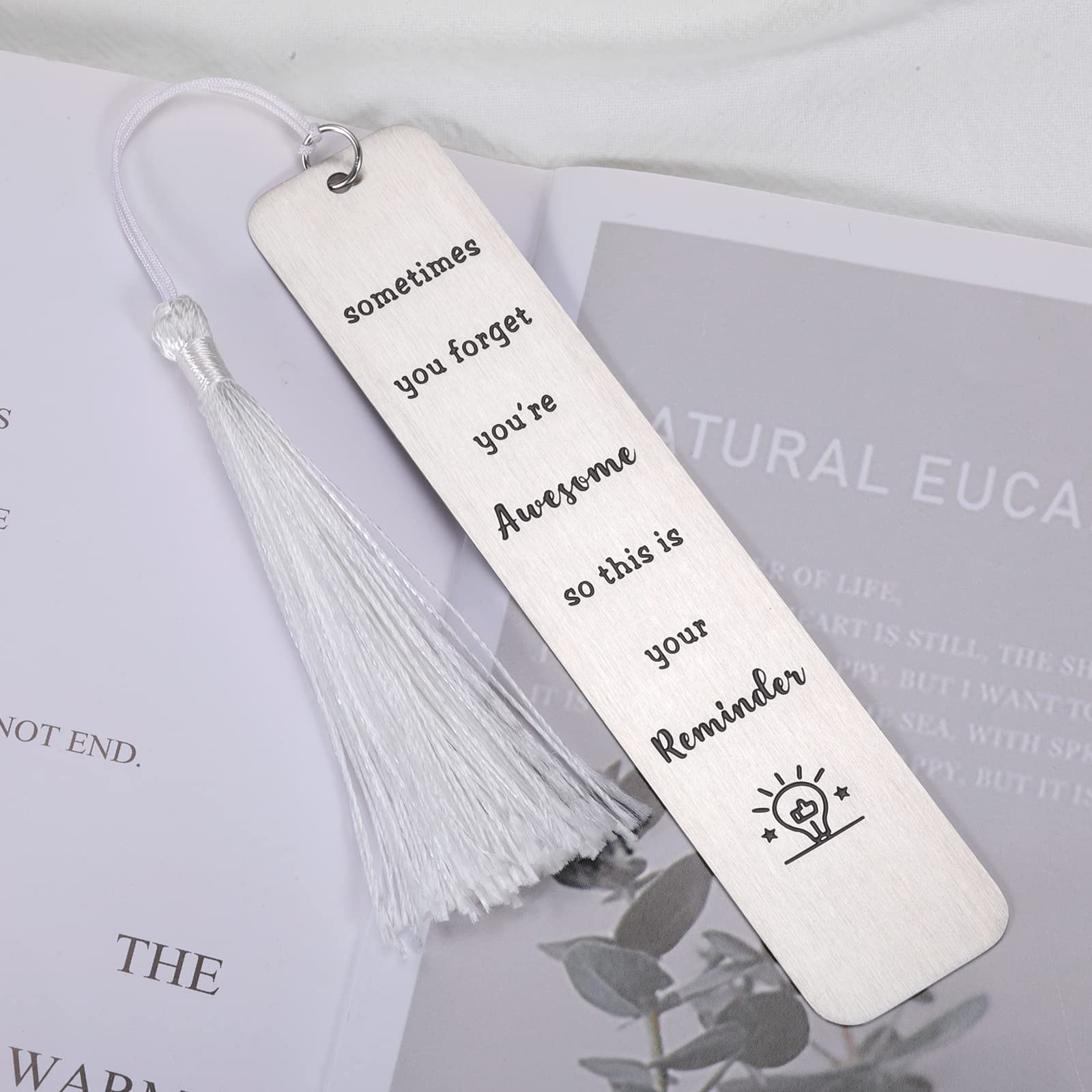- Inspirational Bookmark for Women/Men】-- This encouragement bookmark for son daughter from mom dad is engraved with "sometimes you forget you're Awesome so this is your Reminder". This is a sweet gift idea for kids boys, teens girls, adults, friends, students, teachers, coworkers, employee, boss, son, daughter, dad, mom, book lovers and more. Suitable for children, men and women. They can be reminded to maintain confidence in their own lives. Simple but meaningful.