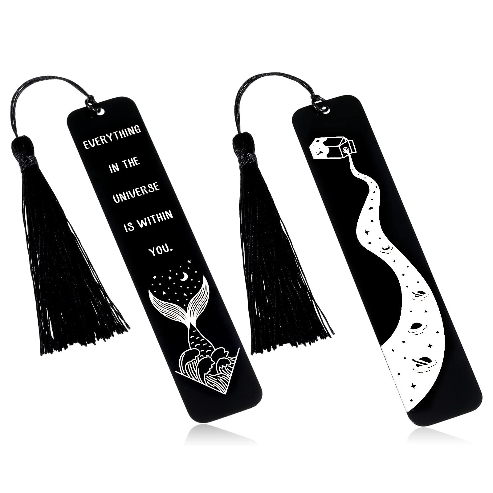 - Bookmarks for Book Lovers - It is a truth universally acknowledged that a reader in possession of a sufficiently large library, must be in want of a bookmark. This Two-sided black bookmark is engraved with universe design and a heartfelt message, 'Everything in the universe is within you'. We have infinte power and knowledge hidden inside our subconscious mind. It creates one of a kind keepsake for your best friend who is a book lover, beloved reader, book fanatic, book obsessed, bookaholic.